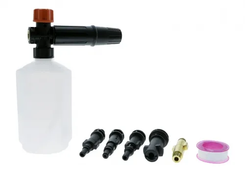 Пеногенератор Sturm! PW92-9905 для моек высокого давления. Бачок для моющего средства 0,5 литра. Регулятор подачи и густоты пены. Пять переходников в комплекте под пистолеты моек высокого давления различных производителей: Sturm, Hanskonner, Karсher, BOSCH и многих других.