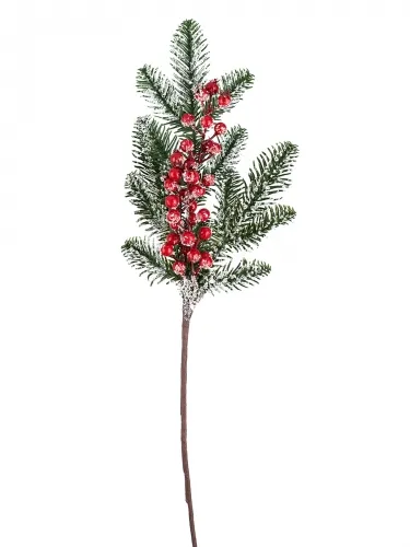 Ветка новогодняя 58см, ПВХ, красно-зеленый Ягоды на снегу