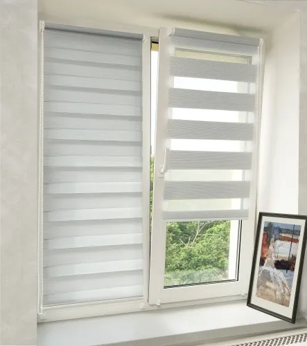 МИНИ рулонная штора "День-Ночь", коллекция "НАТУР", цвет серый.