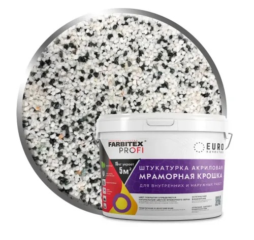 Штукатурка Farbitex Profi акриловая мраморная крошка крупнозернистая 1,5-2 мм, млечный путь, 15 кг