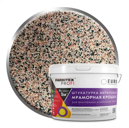 Штукатурка Farbitex Profi акриловая мраморная крошка мелкозернистая 0,5-1 мм, миндальная крошка, 15