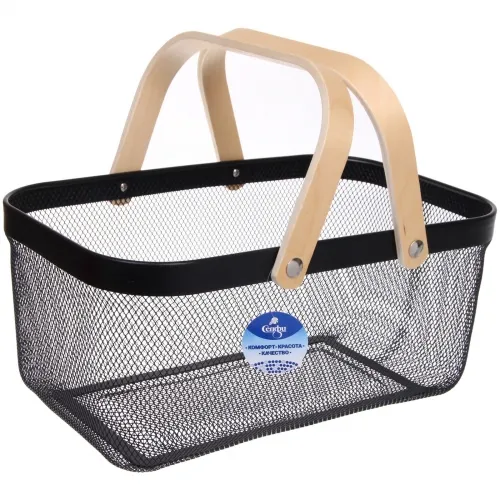 Корзина для хранения металлическая с деревянными ручками "ФАРГО", цвет черный, 19*24,5*40см