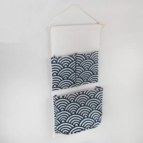 Кармашки настенные, 3 отделения, 47х25см, синий/белый Волна