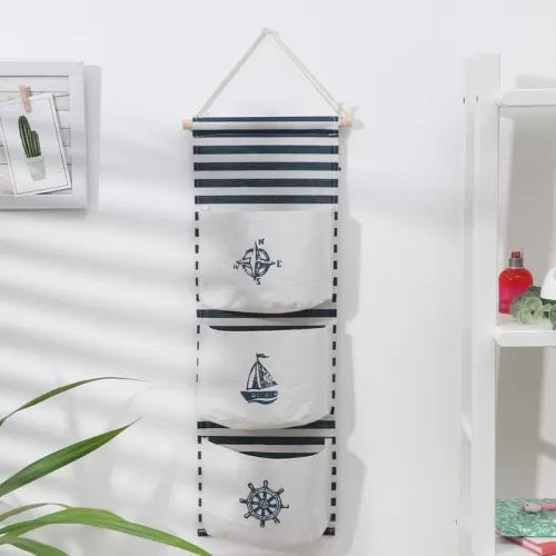Кармашки настенные, 3 отделения, 55х20см, синий/белый Морской бой