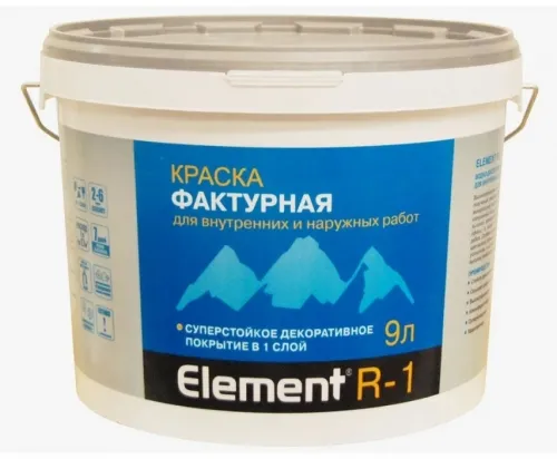 Краска Element R-1 фактурная, для внутренних и наружных работ, 9 л