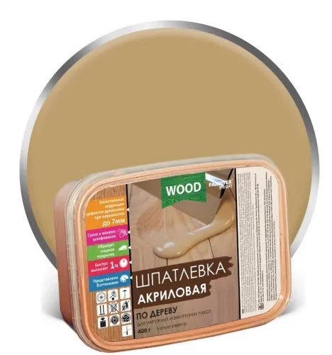 Шпатлевка акриловая Farbitex Profi Wood по дереву, дуб, 0,8 кг