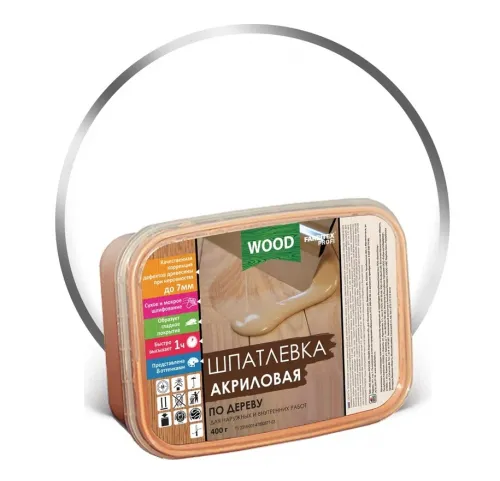 Шпатлевка предназначена для заделки трещин, сучков и других дефектов деревянных поверхностей. Образует твердое гладкое покрытие, устойчивое к дальнейшей механической обработке древесины (пиление, строгание и пр.) Допускает сухое и мокрое шлифование.Обладает повышенной влагостойкостью - отличается высокой пластичностью и заполняющей способностью - быстро высыхает, не дает усадки - образует гладкое твердое хорошо шлифуемое покрытие - срок службы - не менее 5 лет.